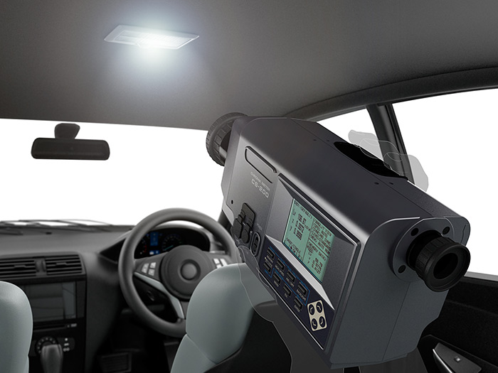 可检查/管理车舱内灯具的LED照明的照度、亮度以及色度。采用手持式设计,对于方向盘或车门附近、座椅下方等车内区域,也可轻松测量。